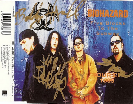 This is the Five Blocks To The Subway tour EP from 1995 signed by the whole band. I met them at Waves Nightclub in Wollongong when they were supporting Slayer. Great bunch of guys, signed lots of stuff for us all. But none of us had a camera. Idiots we are.
