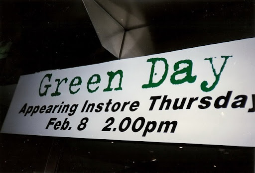 So Green Day came here to play in support of the Insomniac album. They announced an instore at HMV in Pitt St in the city. So along I went with a mate and we lined up with the masses of other kids. We got through about an hour after it started. When we finally got through to the band I noticed that they had used the texta/markers and written all over the TV screens behind them. Very punk. Or try hard punk. Im not sure.